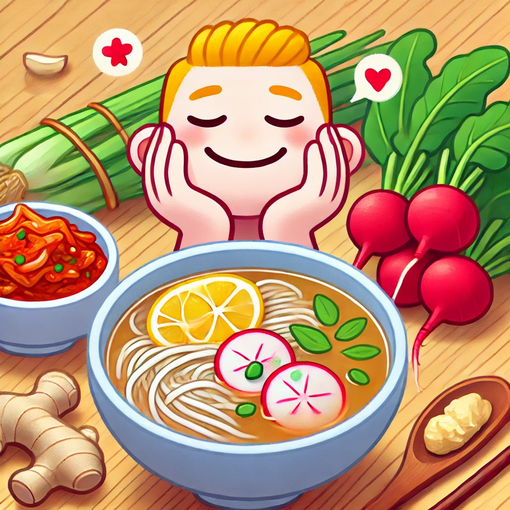 따뜻한 국물과 허브가 어우러진 쌀국수는 몸의 독소를 배출하는 데 도움을 줍니다. 특히 생강과 마늘은 체내 독소를 제거하는 효과가 있어 해독 작용을 촉진합니다.