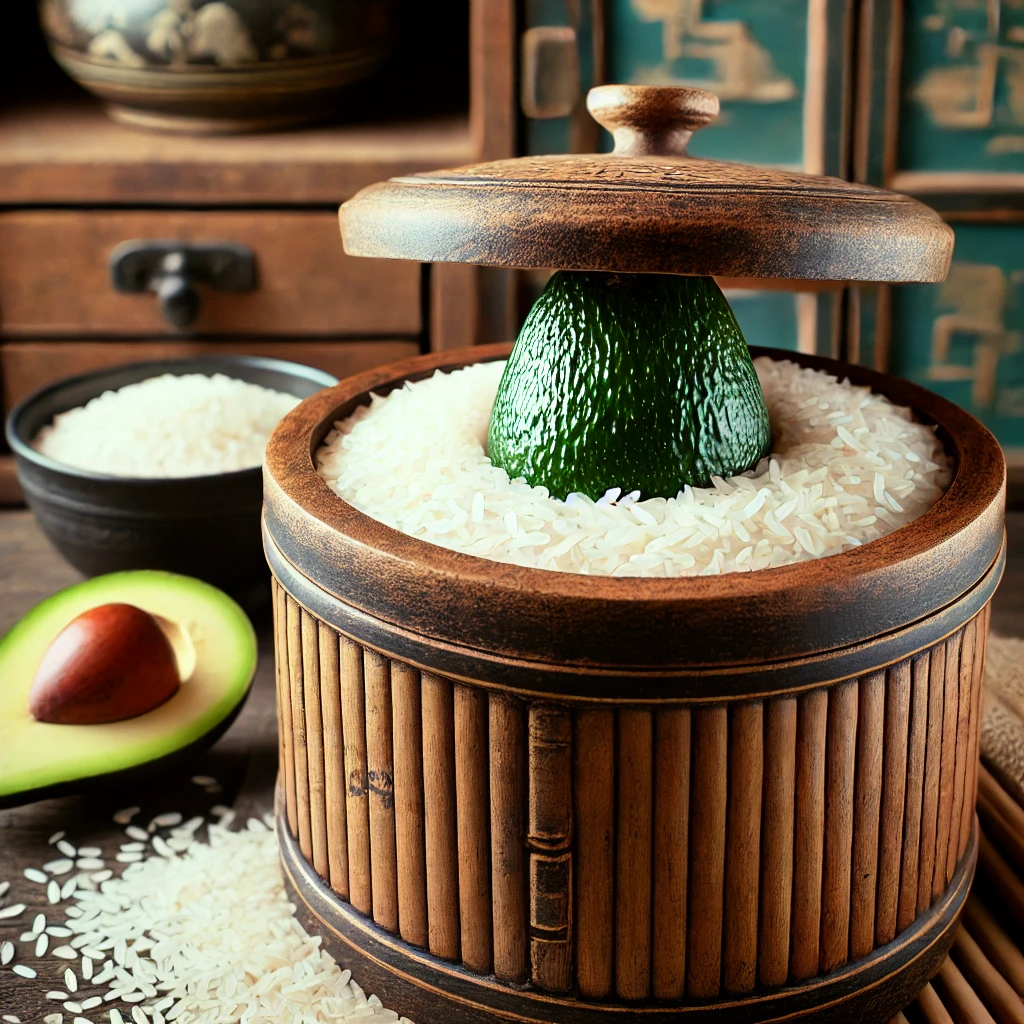 - - 방법: 아보카도를 쌀통 안에 묻어두기