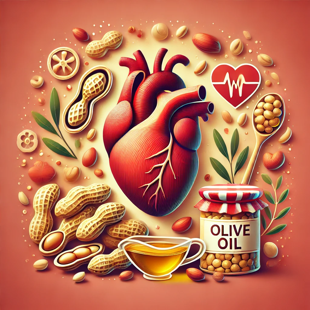 - 땅콩에는 올레산(Oleic acid), 리놀레산(Linoleic acid) 같은 불포화지방산이 풍부하여 혈중 콜레스테롤 수치를 조절하는 데 도움을 줍니다.