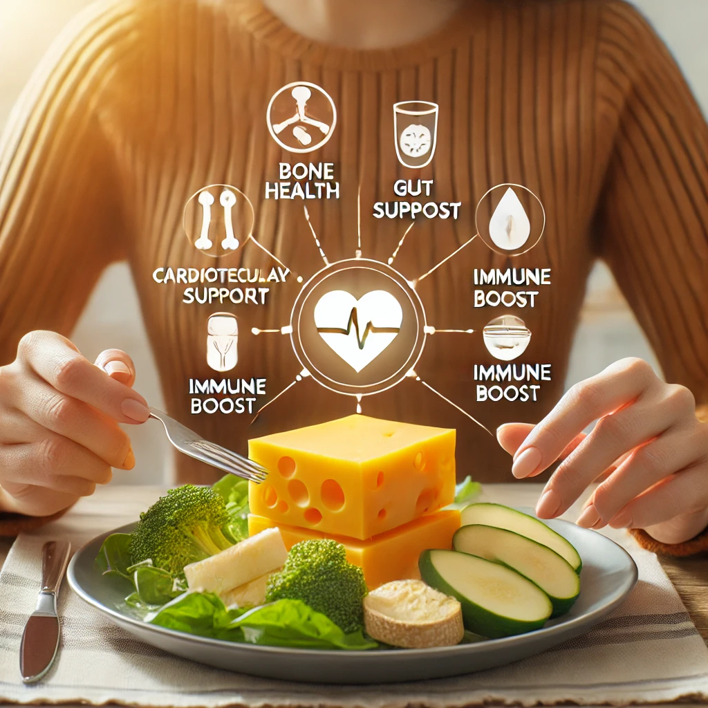 - 치즈에는 항산화 성분과 비타민이 포함되어 있어 면역 체계를 강화하는 데 도움을 줍니다.