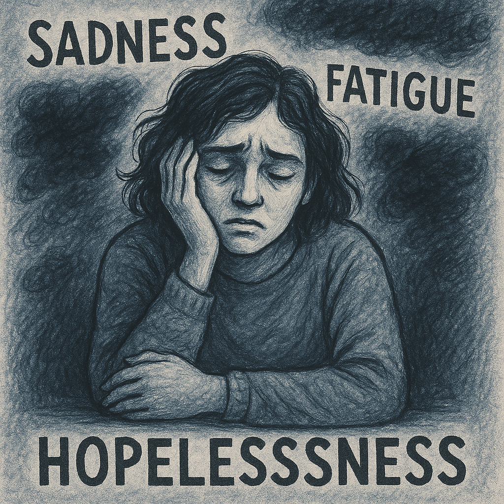 우울삽화는 조증의 반대 상태로, 대부분의 날 동안 다음과 같은 증상이 2주 이상 지속됩니다: