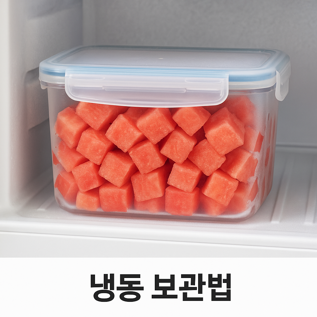 | 자른 수박 | 한입 크기로 잘라 밀폐용기 보관 / 2~3일 내 섭취 권장 |