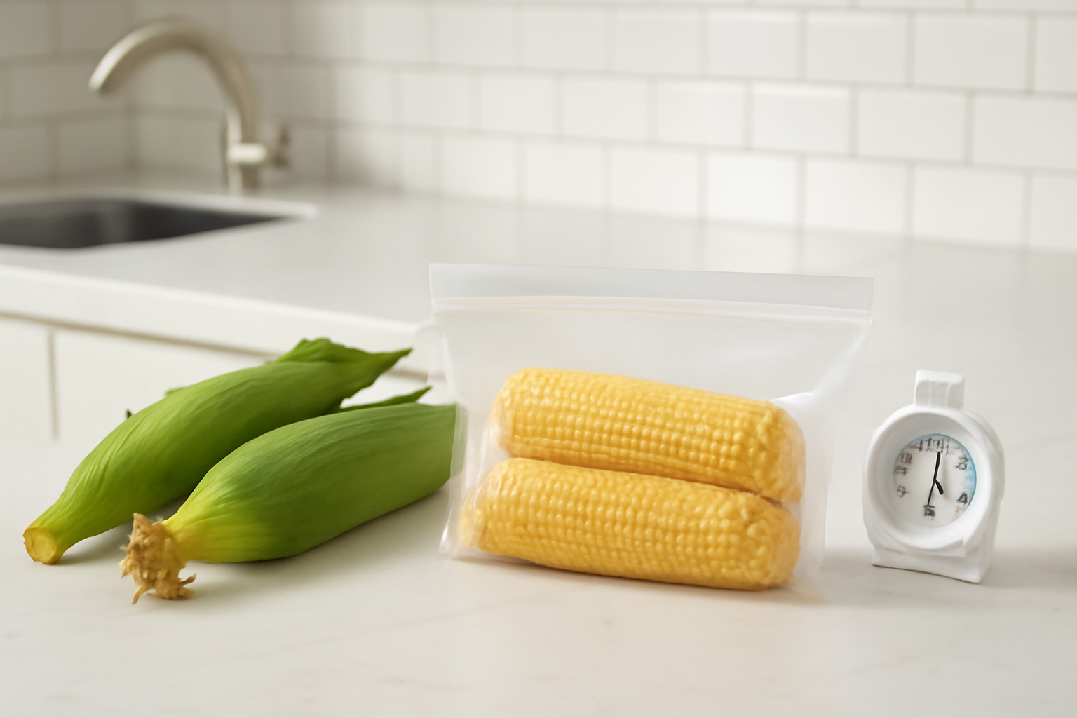 - 생옥수수 상태로 지퍼백 또는 진공팩에 밀봉 후 냉동 보관 (2~3주 보관 가능)