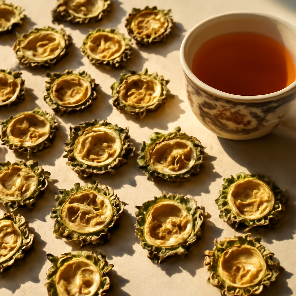 - 씨를 뺀 여주를 얇게 썰어 햇볕에 말린 후 차로 끓여 마시거나, 가루로 만들어 음식에 첨가합니다.