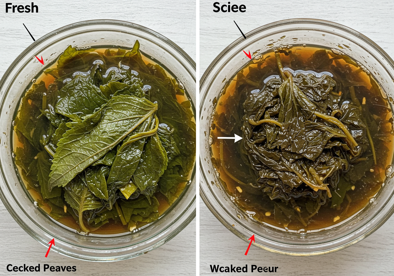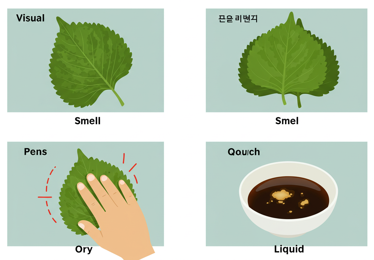 - 촉각: 깻잎이 물컹거리거나 점성이 생기면 변질 신호